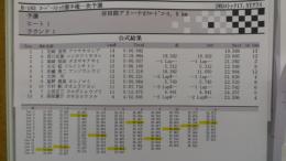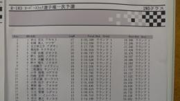 2WDモディファイドクラスの結果。秋元選手がただ一人ベストラップを16秒台に入れ、2位の松崎選手を引き離してトップに立っています。