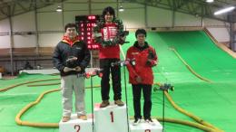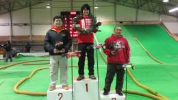ハイスピードバトルとなった4WDモディファイドクラスは、転倒やリタイヤ相次ぎ波乱の展開。その中でもフロントローの菊池選手と秋元選手は接近戦となり、2WDに引き続き秋元選手が優勝しました!表彰台の残り1枠は、混戦の中追い上げた亀谷選手が獲得しました。