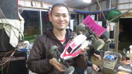福島県いわき市から遠路はるばる参加の間宮選手。ミッド仕様の2WDはFLETA PRO ESCとFLETA ZXモーターを搭載していました。判らない事がありましたら遠慮なく声を掛けてくださいね。