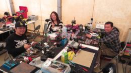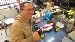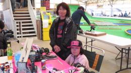 自作ホーネットをドライブする植木選手(左手前)と奥様の由紀選手。一緒のテーブルでピットを構えるのは、こちらも自作マニアの古屋選手。各選手とも上位につけていますね。
