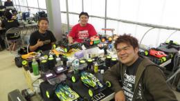 予選で上位を独占したチームヨコモの松倉・足立・菊池選手。コミュニケーションを取りながら的確なセッティングを進めているのが印象的でした。