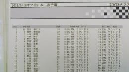 2WD予選1回目は、昨年の全日本不参加で予選からの出場となった足立選手が18周0秒でトップ。ヤングドライバーの梶原・小寺選手がそれに続き、弊社小林もコンマ差で続いております。