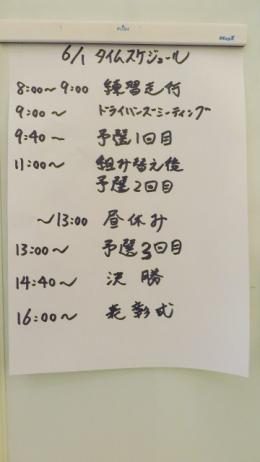 本日のタイムスケジュールと2WD(画像中)と4WD(画像下)の組み合わせになります。