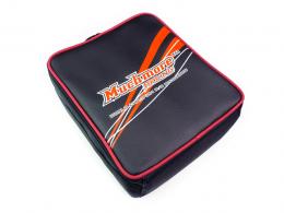 先日の出荷開始からご好評を頂いておりますセルマスターブルアクセル充電器を収納するキャリングバッグです。充電器本体のほか、安定化電源のパワーマスター・電源&充電ケーブル・リポバッグに入れたバッテリーをスマートに収納できる機能的なバッグです。 バッグ本体は型崩れ防止を兼ねた衝撃吸収材を4方向に装備し、大切な充電器を確実に保護します。