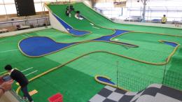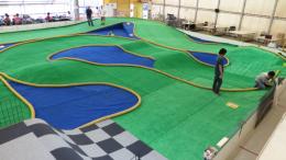 いよいよ明日からEPオフロード全日本選手権がヤタベアリーナで開催されます。会場はほぼ準備が整い人工芝も新品に張替えられました。