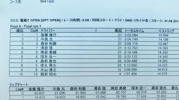 注目のオープンクラスAメイン決勝1回目、スタート直後に2番グリッドの森田(和)選手が姿後続車との接触で順位を落としてしまい、3番グリッドの中島選手がトップの後藤選手を追いかける展開に。しかしその中島選手が操縦台前のシケインで転倒してしまいトップとの差が約2秒と開いてしまいました。そのまま後藤選手が逃げ切りトップゴール!優勝に王手をかけました。2位は中島選手、3位は森田(和)選手でした。