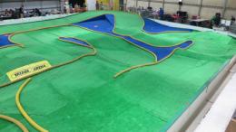今大会のコースレイアウトです。2WD・4WDとも右回り(時計回り)となります。今大会用にレイアウト変更が行われて今日から練習が解禁となったので、参加選手の多くが練習走行に励んでいました。