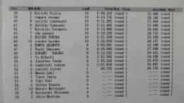 9時から開始された予選1ラウンド目が終了しました。トップは松倉選手、2位にLee選手、3位は井土選手となりました。路面のコンディションが昨日と違うのか各選手ともミスが目立ちました。この後のラウンドでは、トップグループは14周に乗せてくることでしょう。
