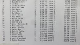予選2ラウンド目が終了しました。予想通りトップグループは14周に突入してタイムを上げてきました。トップは1ラウンド目と同じ松倉選手、2位は1ラウンド目にトラブルで出遅れた秋元選手。調子を戻して好タイムをマークしてきました。3位は秋元選手のチームメイト杉浦選手が獲得です。