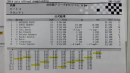 注目のAファイナル1回目、スタート直後は順位の入れ替えこそあったものの大きな混乱も無く各車スタートしました。松倉選手がハイペースで逃げる中、2位争いの秋元・杉浦・Lee選手がそれぞれミスをしてしまい松倉選手から離れてしまいました。途中杉浦選手がトラブルでリタイヤしてしまい2位秋元・3位Lee選手でレース後半へ。終盤に秋元選手が4秒差まで追い上げたものの転倒で再び離れてしまい、松倉選手が幸先良くトップゴールを決めました。2位は秋元選手、3位Lee選手のTOP3となりました。
