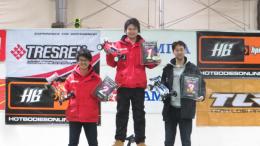 4WDクラスAメイン決勝は、1周目に3位以下の選手が混乱で出遅れてしまい、秋元選手と杉浦選手の両選手が抜け出してチームメイト同士のガチンコバトルを展開。逃げる秋元選手・追う杉浦選手の展開は終盤まで変わらず、秋元選手が逃げ切り2WDに引き続き優勝となりました。