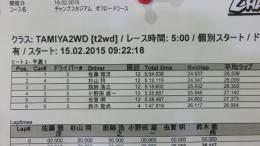 タミチャレ2WDクラスは、桑野選手がただ一人13周をマークしてトップに立っています。前回の月例レースで優勝している加藤航輝選手は、途中リタイアしてしまった模様ですが、2ラウンド以降で巻き返してくると思われます。