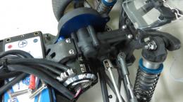 2WDストックで3位争いをしている尼崎選手のアソシB5M。ESC・モーター・バッテリーはすべてマッチモア製を愛用して頂いています。以前ヤタベの人工芝用B5MにはヨコモYZ-2のミッションを改造して搭載していましたが、ストック用マシンはアソシ純正で日本未発売のミッド用3ギヤミッションを搭載していました。交換後はレスポンスが良くなり車が前に出るようになったとの事です。