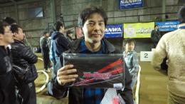 レース後の表彰式が終わった後は、お楽しみ抽選会が行われました。今回も協賛メーカーから多数の協賛品があり、ショップからも一日無料走行券が用意されました。そして抽選&プレゼンターは日本を代表するトップドライバー松倉選手・杉浦選手・秋元選手の3名という豪華な顔ぶれです!