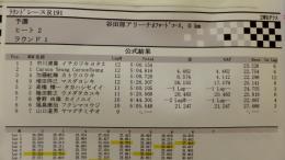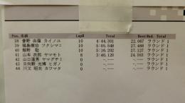 2WDクラス予選1ラウンド目は、松倉選手がただ一人15周をマークしてトップに立ちました。2位はEOSに出場して帰国したばかりの菊地選手、3位は小寺選手が続いています。松倉選手のベストラップは19秒台に突入していますね。