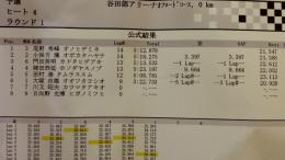 4WDクラス予選1ラウンド目は、2WDに引続き松倉選手がトップ。2位の笹津選手に10秒以上の差をつけていますね。3位は菊地選手がつけています。ヤングドライバーの小保方選手・海保選手がTOP10内に入る好タイムをマークしています。
