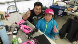 仲良く参加の高崎選手と星野選手は、最近になって2WDをYZ-2にチェンジ。良く見るとアルミパーツのアルマイトをボディカラーに合わせてピンク・ブルーに変更してありました。アルマイトの色が綺麗でカッコいいですね。