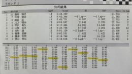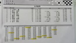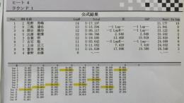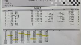 1ラウンド目のトップタイムは、アソシB5Mを使用する笹津選手がマーク。それに続くのが同じ15周をマークした木村選手、3位は先週のラウンドレースで3位表彰台を獲得して絶好調の小保方選手となっています。この後のランチタイムで成績順による組み換えが行われます。