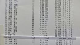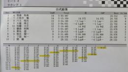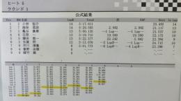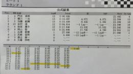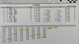 4WDクラス予選1ラウンド目は、菊地選手がただ一人15周に入れてトップに立ちました。2位は2WDクラスでトップタイムをマークした笹津選手が14周5分0秒で続いています。2ラウンド目はランチタイムを挟んで、12時30分から開始されます。