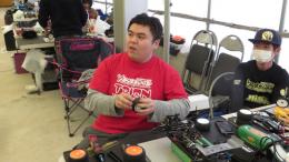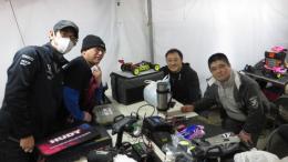 田村選手・山根選手を中心としたメンバーのピットテーブル。同ヒートで走行していた田村選手と山根選手でしたが、先にゴールした山根選手が最終ラップ走行中の田村選手の進路妨害をしそうになり2人して慌てたそうです。未遂で終わってよかったですね。