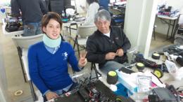 こちらは参加常連組みの八島選手と桜庭選手。八島選手の愛車アソシB44.1には、FLETAPRO ESCとFLETAモーターが搭載されています。7.5Tに12.2mmローターをチョイスして好みの出力に仕上げてあります。桜庭選手は歯車が噛み合わず本来の速さが発揮できず不完全燃焼のようです。この後の決勝で快走してください!