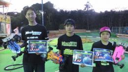 2WDクラス決勝Aメインは、GB運営陣の悪知恵によりワークス勢が後方に下げられ更にリバースグリッドとなってしまい、その結果TQの木村選手は最後尾からのスタートとなってしまいました。そのグリッドでスタートしたレースは、最後尾スタートの木村選手がTQの意地を見せてトップに立ち、そのまま逃げ切って優勝を決めました!2位は僅かに及ばなかった小寺選手、3位は菊池選手となりヨコモワークスが表彰台を独占しました。