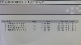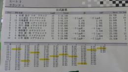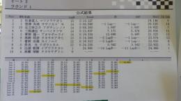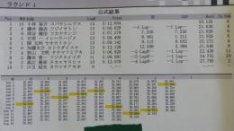 2WDストッククラス予選第1ラウンドは、関西から参加の山崎選手が藤田選手を抑えてトップに立っています。
