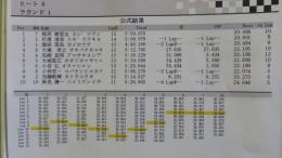 4WDクラス予選第1ラウンドは、菊池選手が快走してトップタイムをマーク。2位は約3秒差で梶原選手、3位はレース中のトラブルによるタイムロスを挽回した松倉選手となっています。