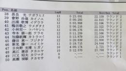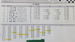 4WDクラス予選第2ラウンドは、最終ヒートに出走した選手による熱いバトルとなり、杉浦選手がこのヒートを征して暫定TQとなっています。2位は1秒差で松倉選手、3位は秋元選手が浮上。1ラウンド目でトップだった菊池選手はタイム更新ができず4位に後退してしまいました。